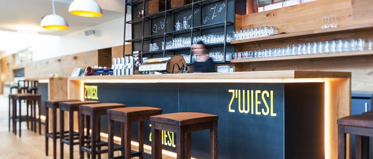 Unser Barraum bietet modernes Ambiente. Nehmen Sie Platz an der langen, eleganten Bar oder auf der geräumigen Ledersitzbank und genießen Sie die köstlichen Schmankerln für den kleinen Hunger, frisch gezapftes Bier, erlesene Weine oder Cocktails. Nach Ihrem harten Arbeitstag, am Beginn Ihres wundervollen Abends, hier ist der Treffpunkt für jung und alt.
