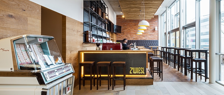 Unser Barraum bietet modernes Ambiente. Nehmen Sie Platz an der langen, eleganten Bar oder auf der geräumigen Ledersitzbank und genießen Sie die köstlichen Schmankerln für den kleinen Hunger, frisch gezapftes Bier, erlesene Weine oder Cocktails. Nach Ihrem harten Arbeitstag, am Beginn Ihres wundervollen Abends, hier ist der Treffpunkt für jung und alt.